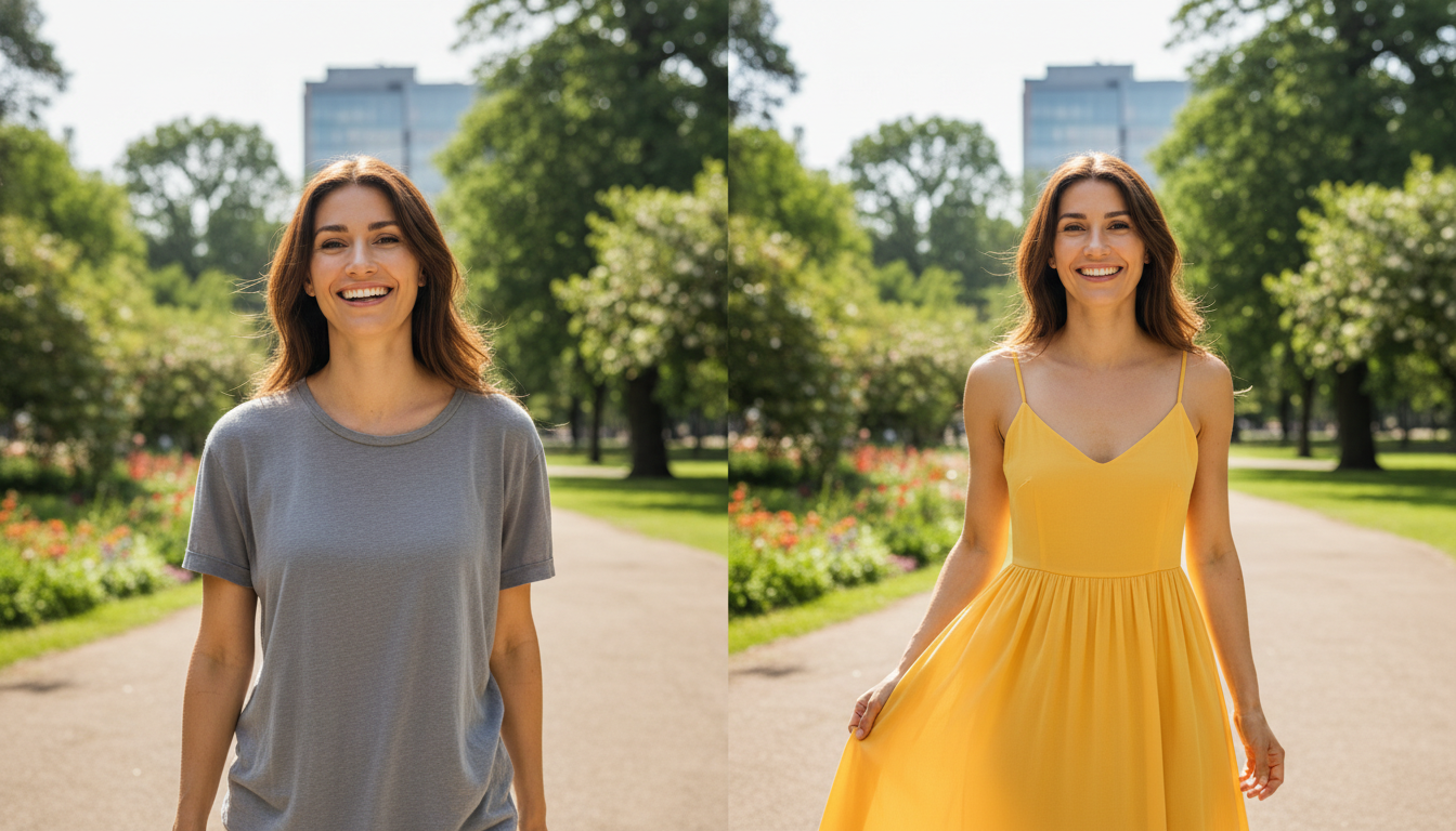 Have you ever taken a fantastic picture where your hair and smile look amazing, but you realize you are wearing an old, stained t-shirt? With Haimeta, you do not need to retake the photo. Just type, 'Replace my shirt with a crisp white button-down,' or 'Change my outfit to a stylish denim jacket.' The AI respects the contours of your body and the original lighting, making it look like you actually wore that outfit.